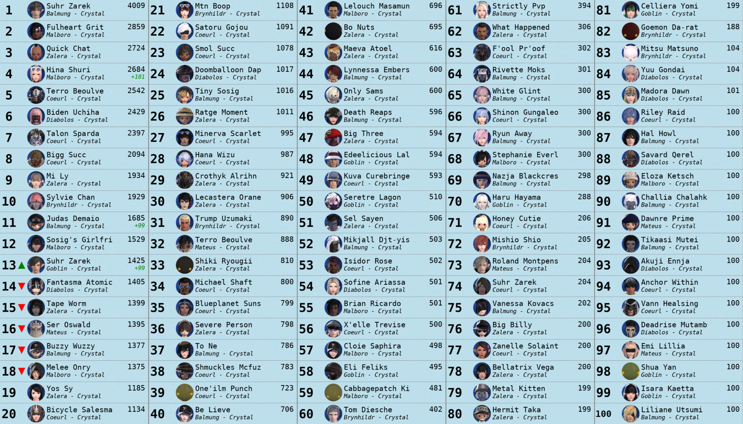 | 08-19-22 | Duo (MCH + WHM) | 77 | Died to Yeti cone |